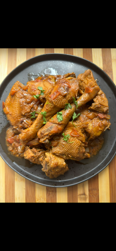 4. Then place into a preheated oven (180degrees for about 9-10 minutes – time may vary but don’t let it burn, putting it in the oven adds a REALLY nice roasted smoky flavour to the chicken .. trust me on this!! – but if you do not want to use the oven you can just fry the chicken in the pot until browned.