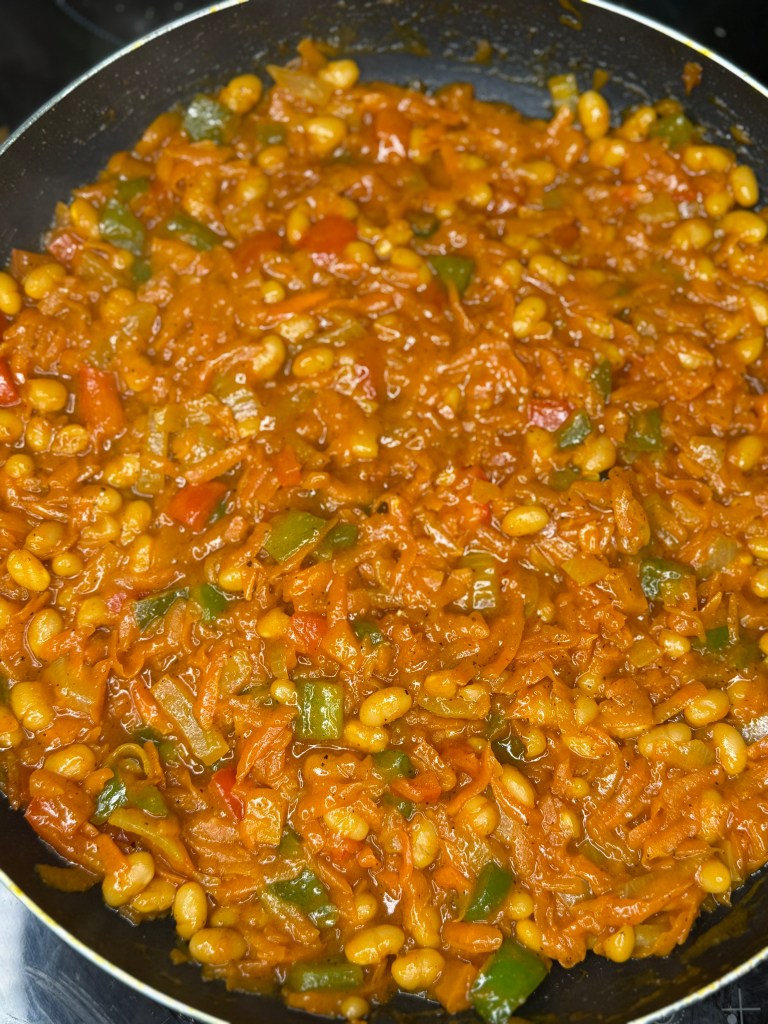 ⁃ Half a small red pepper, yellow pepper and green pepper (chopped)