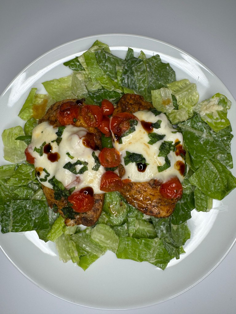 ⁃ Balsamic glaze (optional – to drizzle on top, adds a nice sweet, tangy taste to the dish – highly recommend