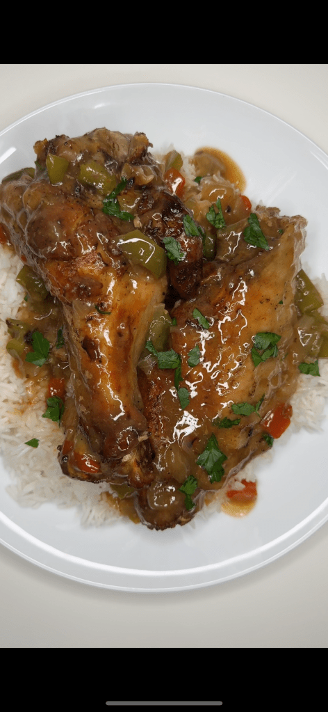 7. Serve with your choice of side, I had mine with rice and some veg.. enjoy!